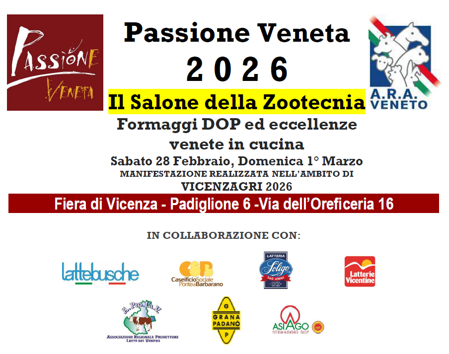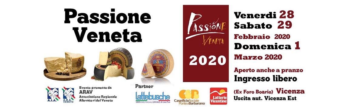 Il formaggio di qualità protagonista a Vicenza, con Passione Veneta, dal 23 al 25 febbraio al Foro Boario, grazie ad Arav ed Aia, promotori della manifestazione con le quattro maggiori latterie venete, Lattebusche, Latteria Soligo e Caseificio Ponte di Barbarano. L’evento, primo nel suo genere, patrocinato dalla Regione del Veneto e dal Comune di Vicenza e realizzato con il contributo di Camera di Commercio di Vicenza, Campagna Amica di Vicenza, Qualità Verificata ed Unicarve, vede quali sponsor i Consorzi di tutela Grana Padano Dop, Casatella Trevigiana Dop, Piave Dop ed Asiago Dop. L’organizzazione è stata affidata al Guru del gusto, chiamato ad interpretare la passione degli allevatori, da cui deriva, appunto, il nome dell’evento. Due i messaggi chiave che Passione Veneta vuole lanciare ai consumatori: la qualità del formaggio veneto e l’importanza che lo stesso riveste per la salute dell’uomo. Tre giorni di informazione, formazione, ma anche divertimento, nel corso dei quali sarà possibile conoscere e degustare il meglio delle produzioni lattiero casearie venete. Significativo l’apporto di Campagna Amica, che proporrà ai cittadini coinvolgenti laboratori per imparare ad utilizzare al meglio i formaggi. Gli allevatori veneti, al contempo, ci metteranno la faccia e conosceranno direttamente i consumatori, ai quali saranno pronti a dare tutte le informazioni sul percorso di qualità intrapreso con Arav e le quattro maggiori latterie venete. Un percorso di impegno e stimolo nato per rispondere ad una precisa richiesta del consumatore, che in tavola vuole sempre più formaggi di qualità ed ha bisogno di saperli distinguere.